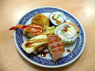 這一盤什麼都有的綜合壽司~~一盤只要70元;