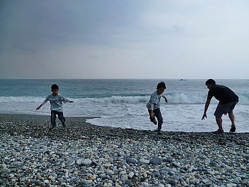 浪打上來就快溜......否則恐怖的馬麻不給上車柳.....