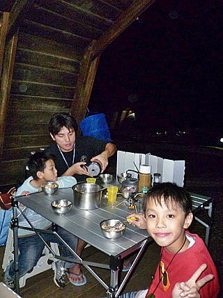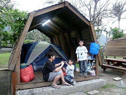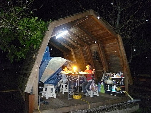8點多.....下起毛毛雨.....這個木造屋頂營位,讓我們就像住小木屋,一點也不潮濕!!!