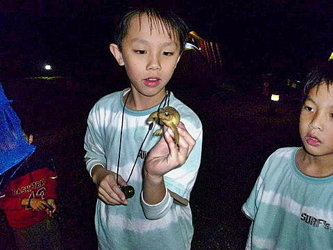 抓到一隻"青蛙"....不,應該是蟾蜍.....來給我看......