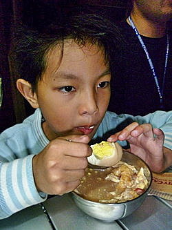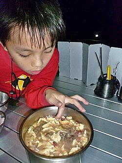 晚餐,鬍子老爹將家裡帶來的牛肉湯和剩飯及一些冰箱內的食材丟丟進去住了一鍋牛肉粥