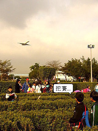 臨近松山機場的新生園區,隨時都可以看到飛機降落....