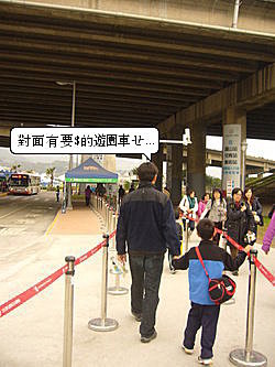 鬍子老爹得知免費接駁車對面有付費的遊園車可抵達"大佳東"