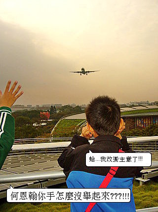 挖哈哈...就在飛機從我們頭頂呼嘯而過之際....