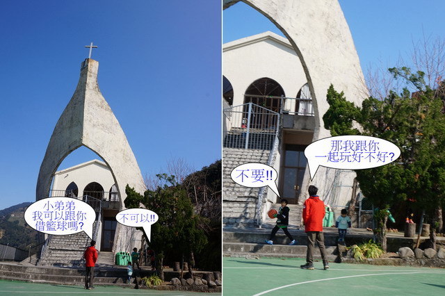 幾個可愛的小男孩正拿著球在方舟教堂前的這處籃球場玩耍呢~