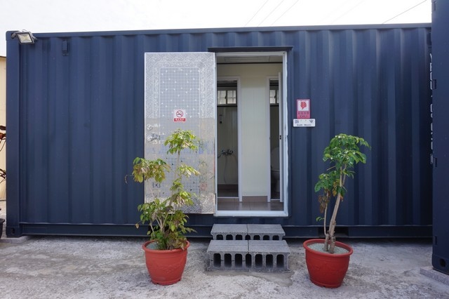 以貨櫃屋圍起的區塊,就是營地裡的水槽設備和衛浴設施...