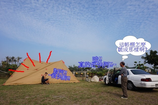 黑啦~黑啦~~雙峰帳搭起來的速度是很快沒錯.....